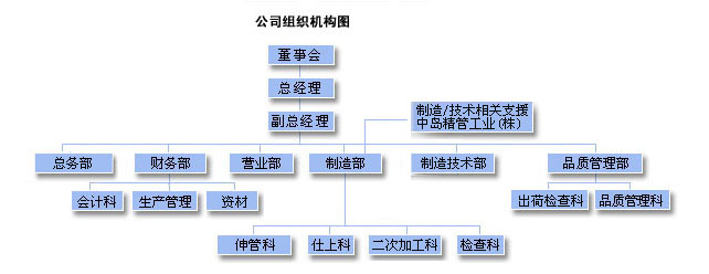 我公司以日本中岛精管工业株式会社成熟的技术和制造专利为基础,在大连生产这种产品、销往中国市场的同时进军海外市场。今后,我公司将以阴极套管制造技术为基础,为中国市场的新领域开发新产品,为取得更多金属精密管制造厂家的支持而诚心诚意,竭尽全力。公司于2005年12月通过ISO9001:2000与ISO14001:2004双体系认证。谢谢各位对大连中岛精管有限公司的关照。